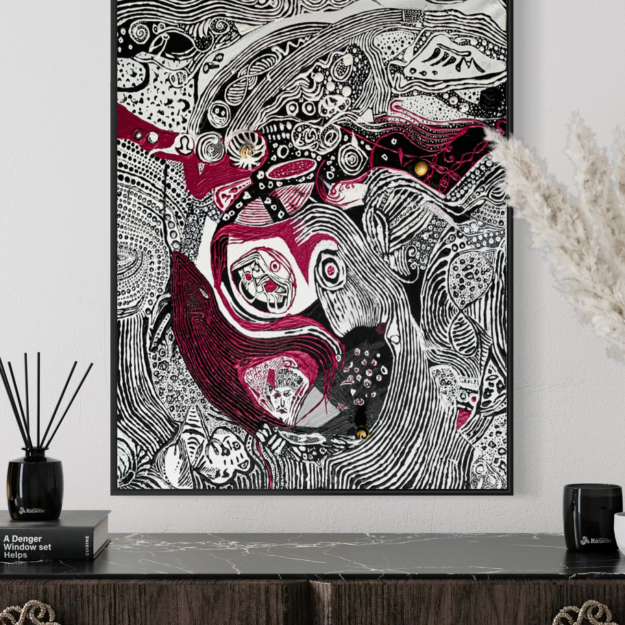 The Dream Healer was created over a year and a half, mainly in Bremen with a journey to Hannover. Inspired by the idea of protection in sleep, it acts like a dreamcatcher for the darker energies, keeping you safe from shadowy influences while you rest. A powerful and unique artwork that brings calm, security, and a sense of inner peace to your space.